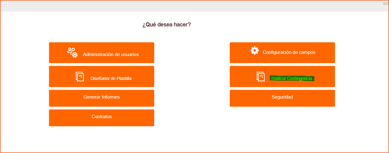 - Una vez carga la pantalla se debe ingresar a la opción radicar contingencia y es allí donde se debe adjuntar la carta generada por el representante legal