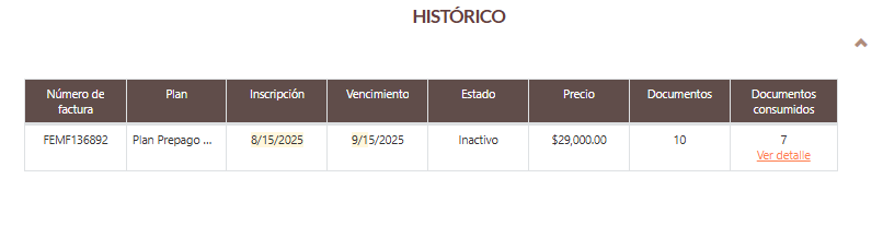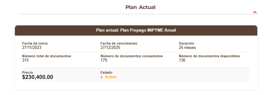 En caso de que no logre visualizar esta información, puede dar clic sobre el logo de Mis Facturas, lo cual le redireccionará nuevamente a la página de inicio, donde podrá validar el estado del plan actual.