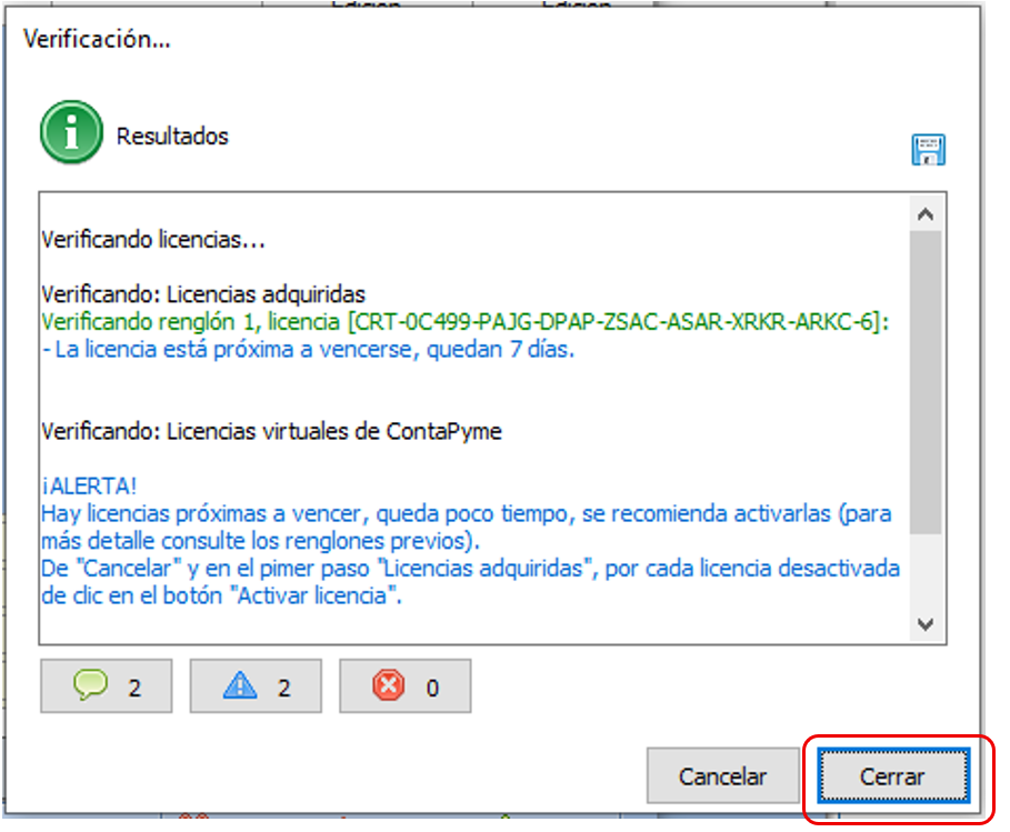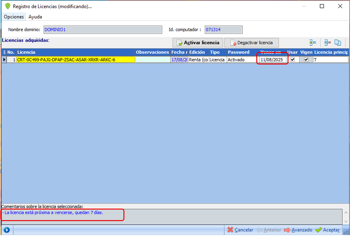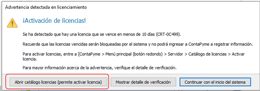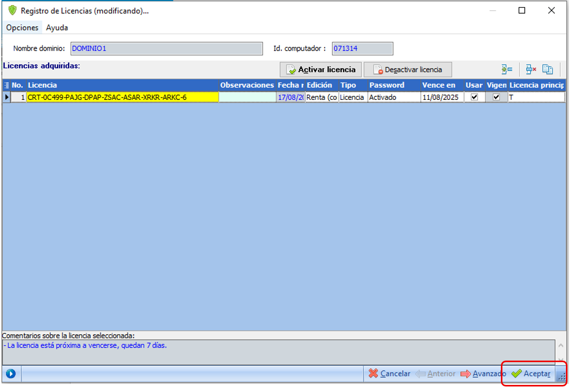 Si al ingresar al sistema le aparece el mensaje indicando que su licencia está próxima a vencer, deberá seguir los siguientes pasos: