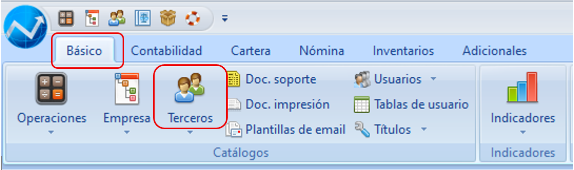 Ingresa a la pestaña “Básico” y selecciona la opción “Terceros”.