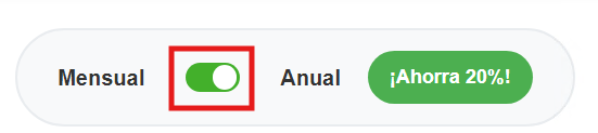 - Para poder visualizar los planes anuales debe mover el botón que se encuentra en medio de la palabra mensual y anual, hacia el lado derecho para que el botón cambie de color a verde.