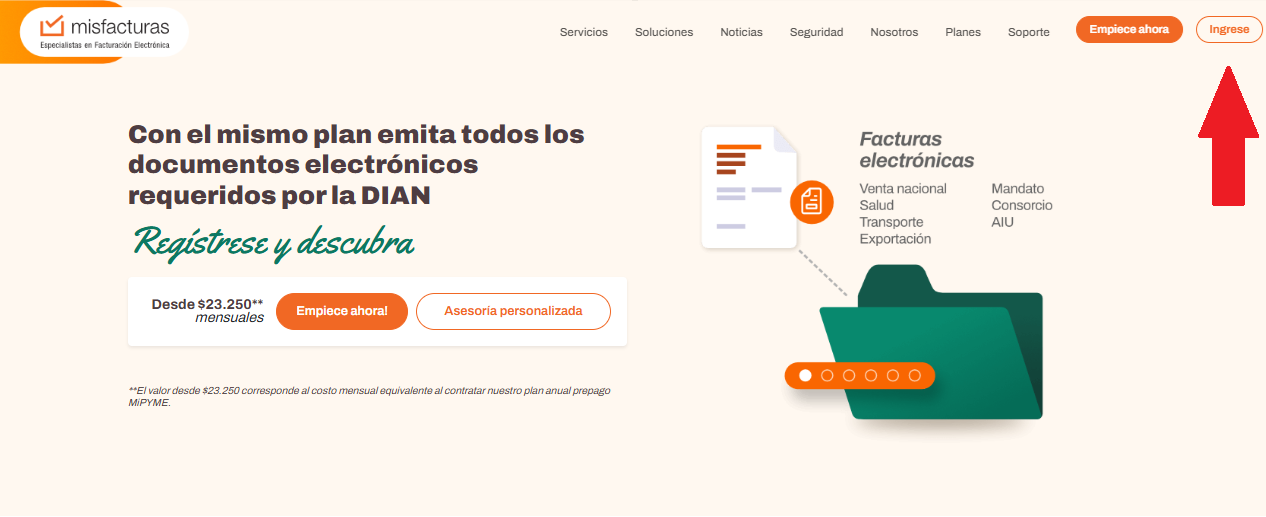 Esto permitirá asignar un usuario y garantizar su acceso a la plataforma de manera correcta.Ingresamos a la plataforma de mis facturas a través del enlace www.misfacturas.com.co