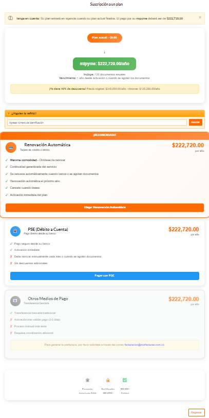 Una vez seleccione el plan que desea, deberá escoger la modalidad de pago.