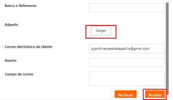 6. Por ultimo debe adjuntar el soporte de pago dando clic en el botón de "Cargar" y da clic en ''Aceptar'', para que de esa manera se guarde la conciliación de forma correcta y termine el proceso: