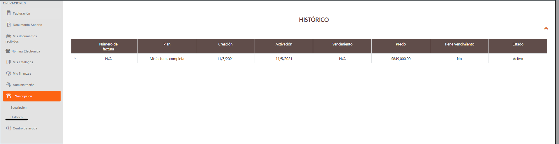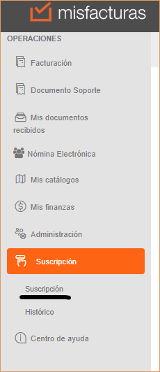 - En la barra de Operaciones, ubicada en la parte izquierda de la pagina, encontrara Suscripción, haga Clic Allí.