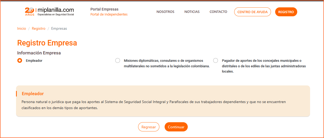 Al dar clic allí lo dirigirá a la ventana de registro Mí Nomina.