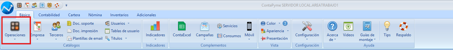 En la barra de herramientas seleccione la opción “Operaciones”.