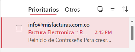 4. En el e-mail recibido debe dar clic en el vínculo resaltado de reiniciar mi contraseña